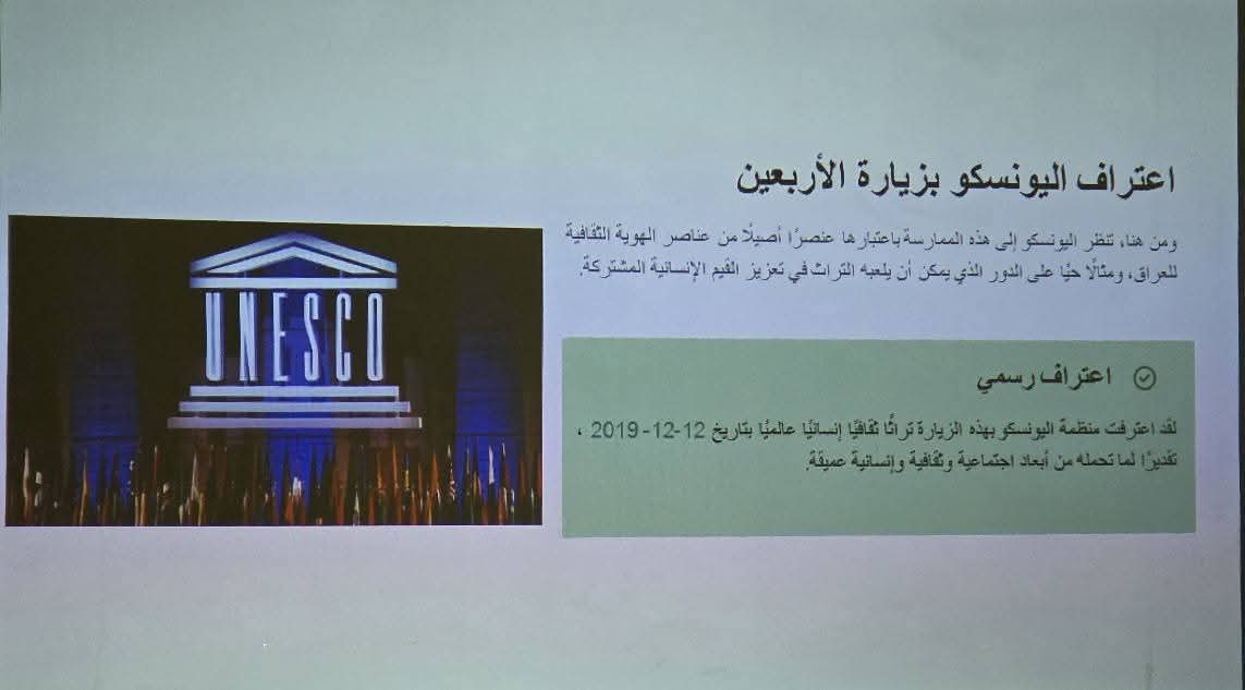 اختارت منظمة اليونسكو ولأول مرة في العراق من منظور عالمي الزيارة الأربعينية لتسجل على لائحة التراث الثقافي العالمي.حول هذا الحدث أقامت وزارة الثقافة والسياحة والآثار ندوة.. تحدثت عن إبعاد الحدث العالمي الذي شكلته هذه الشعيرة من تأثير..