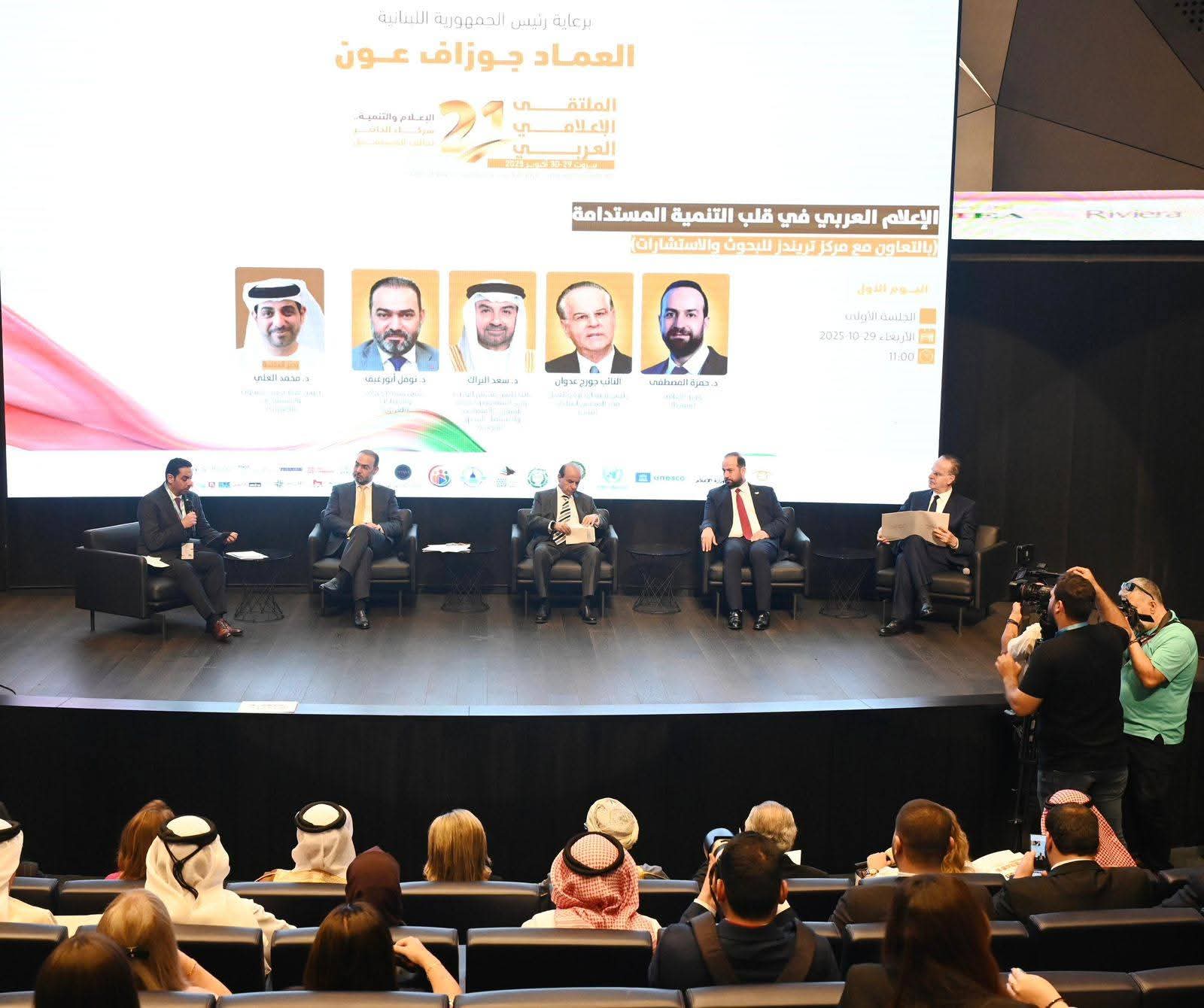 مؤشّراً في كلمته بأن بيروت وبغداد والعواصم العربية ليست مجرد مدن عريقة تشكل النسيج العربي المتكامل فحسب، بل هي رموز متقابلة على ضفاف الإبداع العربي، تتبادل الضوء وتتحد بالرسالة النبيلة والمشتركات الإنسانية وفي مقدمتها الإعلام الذي يمثل بوصلة الأمة وضميرها الناطق وجسرها الممتد بين الشعوب .